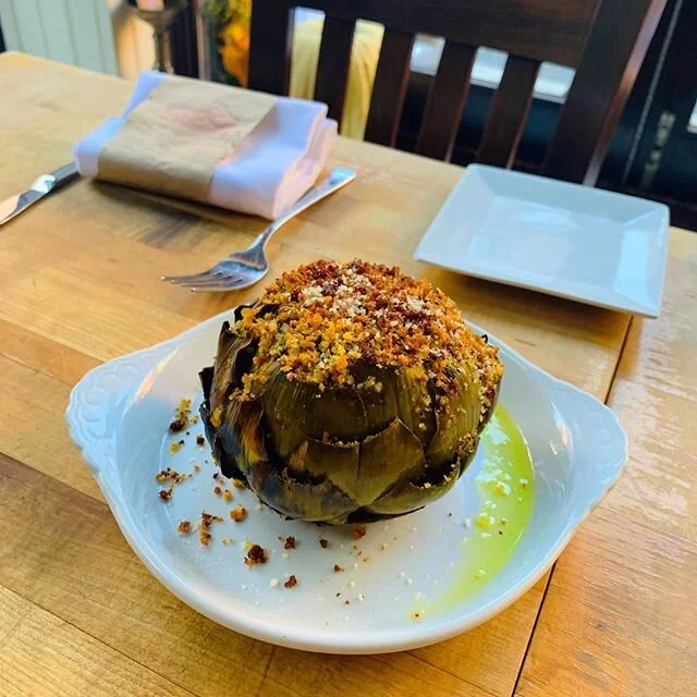 Enjoy appetizers such as the whole grilled artichoke or the Mercato antipasti, a plate to share that includes Italian cured meats, mozzarella, tomato, and grilled and marinated vegetables.